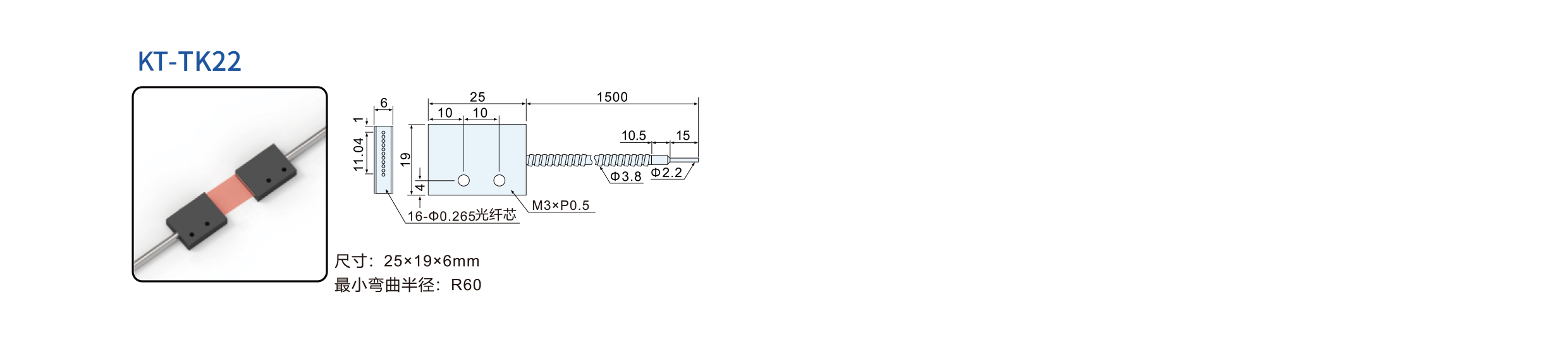 凱基特光纖傳感器是一種將被測對象的狀態(tài)轉(zhuǎn)變?yōu)榭蓽y的光信號的傳感器。光纖傳感器的工作原理是將光源入射的光束經(jīng)由光纖送入調(diào)制器,在調(diào)制器內(nèi)與外界被測參數(shù)的相互作用, 使光的光學(xué)性質(zhì)如光的強度、波長、頻率、