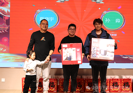 年會現(xiàn)場驚喜禮品接連掉落,互動大屏氣氛嗨翻全場,一輪又一輪激動人心的幸運抽獎,頻頻引爆年會氣氛。空氣炸鍋、松下暖風機、莫比智能橢圓機等各種獎項不斷放送,現(xiàn)場驚喜連連,熱鬧非凡!