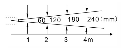 本檢測(cè)器在現(xiàn)場(chǎng)安裝時(shí),可根據(jù)視場(chǎng)范圍,還料品種來(lái)設(shè)置距離,用目測(cè)法對(duì)準(zhǔn)。